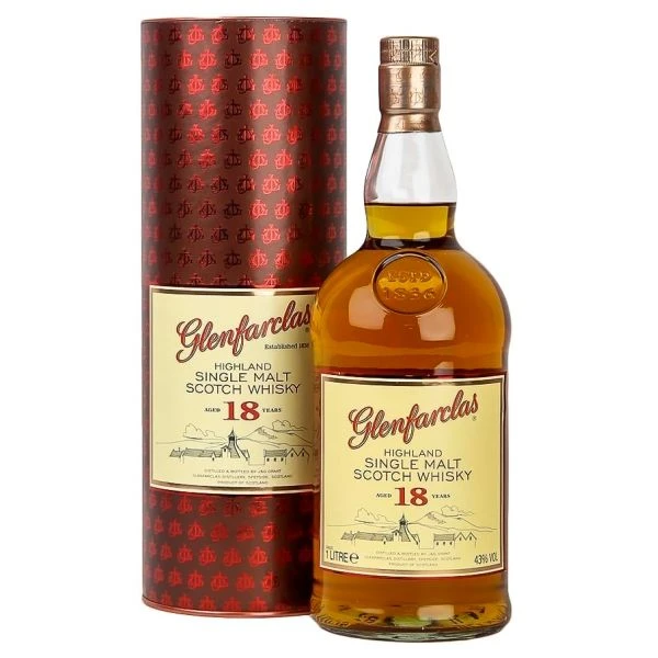 La palabra Glenfarclas procede del gaélico, y significa “Valle de la Pradera Verde”, ubicada a los pies de Ben Rinnes, montaña que se encuentra situada al norte de Escocia y tiene un total de 20 km². Este single malt Glenfarclas ha sido producida con el agua mas pura y envejecido durante un periodo de 18 años en barricas de Jerez, las cuales son elegidas personalmente por John Grant en España y que se han usado previamente para la maduración del fino de Jerez Oloroso.