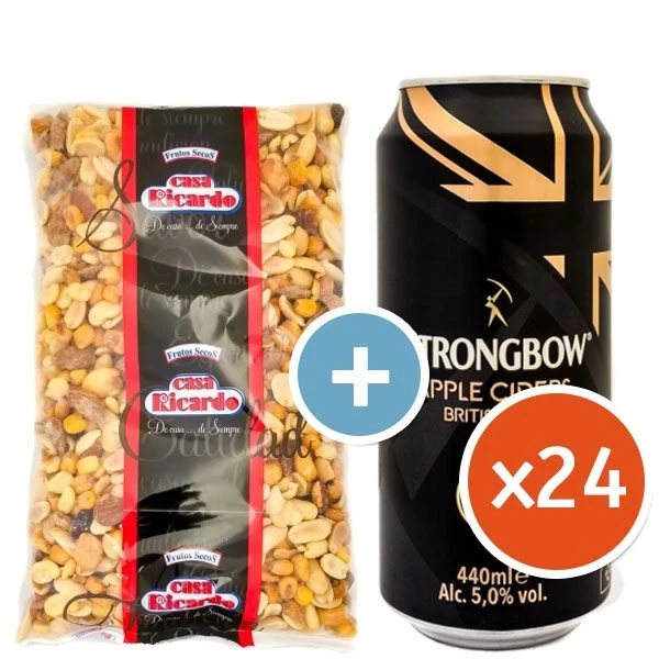 Pack Supervivencia Strongbow con Frutos Secos Gratis es un fantástico Pack de 24 Latas con 1Kg de Frutos Secos Gratis de tipo Premium con un Grado alcohólico del 4,5% con origen Reino Unido, sin duda un de los mejores de la categoría de Sidra.